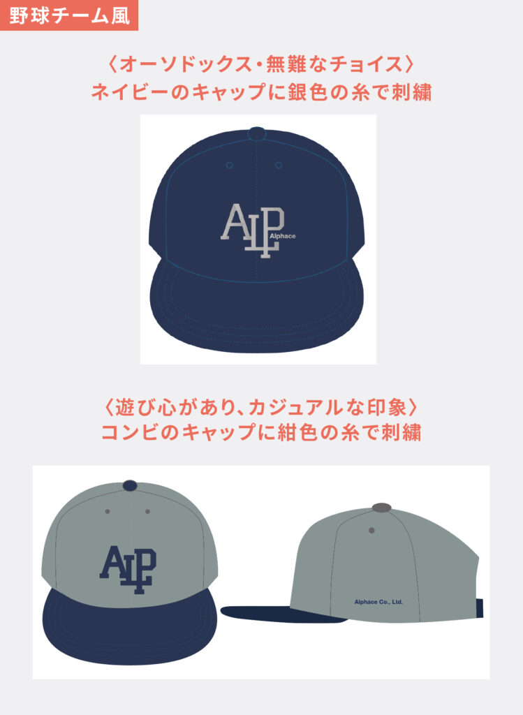 アルファスとして、機能性はもちろん、どんな会社に見られたいか、お客様、同業者…、人の目を意識したキャップ製作。さて、どんな仕上がりになったでしょうか。
