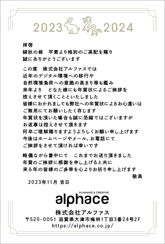 最後に、2023年に送った弊社の『年賀状仕舞い』を伝えるハガキをご紹介して、このコラムを『仕舞い』ます。